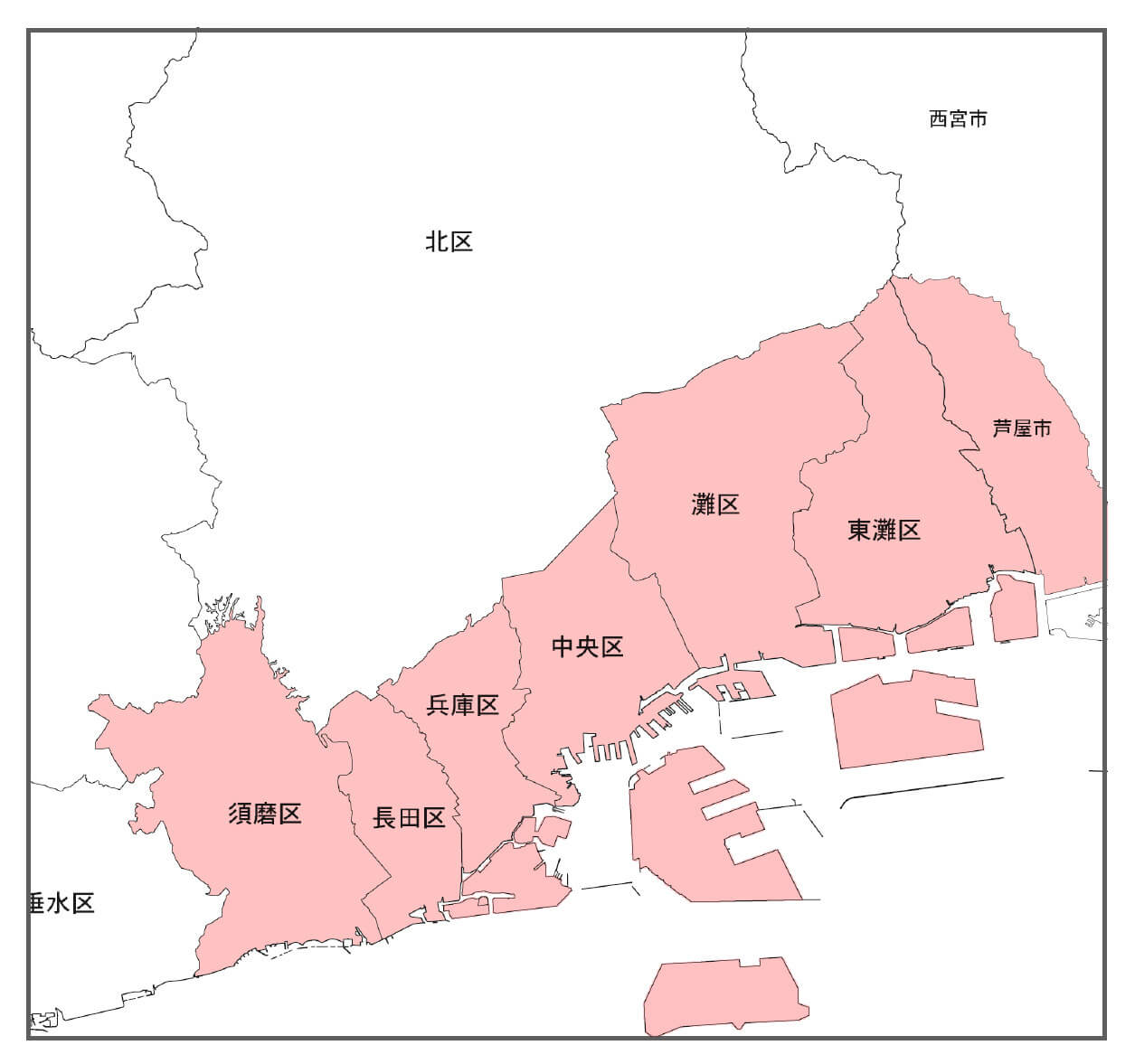 神戸市中央区、灘区、東灘区、兵庫区、長田区、須磨区、芦屋市、その他は有料になります。